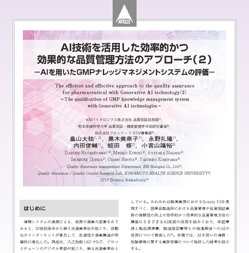 - AIを用いたGMPナレッジマネジメントシステムの評価 -」