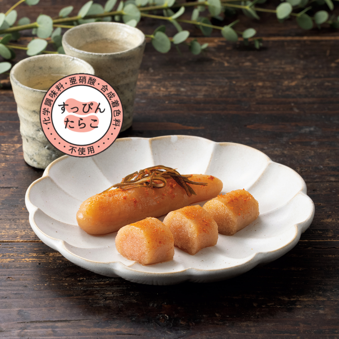 【無添加】化学調味料・亜硝酸・合成着色料を一切使用せずに粒感をだすのが難しい辛子明太子づくりの常識の中で塩と工程にとことんこだわった“すっぴんたらこ”は、直接原卵(スケトウダラの卵)を仕入れることができる塩たらこ生産加工会社だからできる品質です。