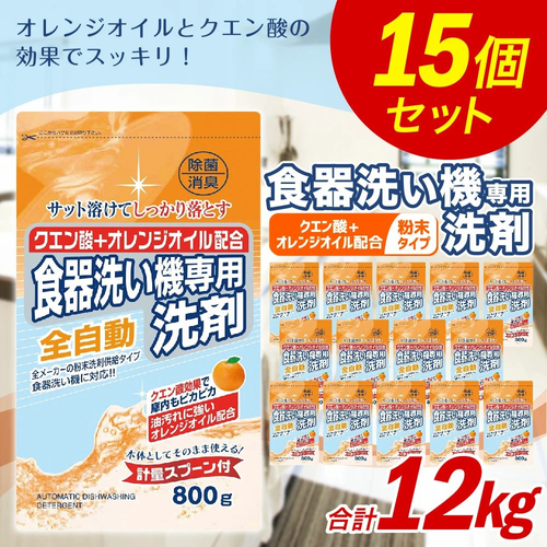 食洗器用 洗剤 合計 12kg 800g×15個 クエン酸 + オレンジオイル配合 食器洗い機 粉末洗剤供給タイプ
