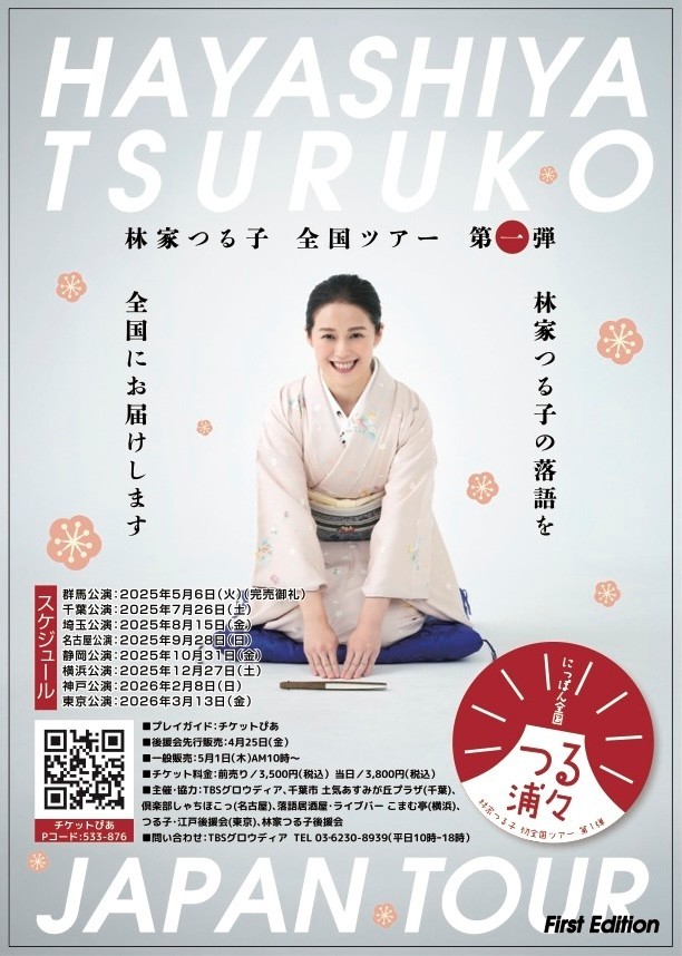 株式会社TBSグロウディア(東京都港区、代表取締役:園田憲)は、落語家・林家つる子の全国ツアー開催を発表した。