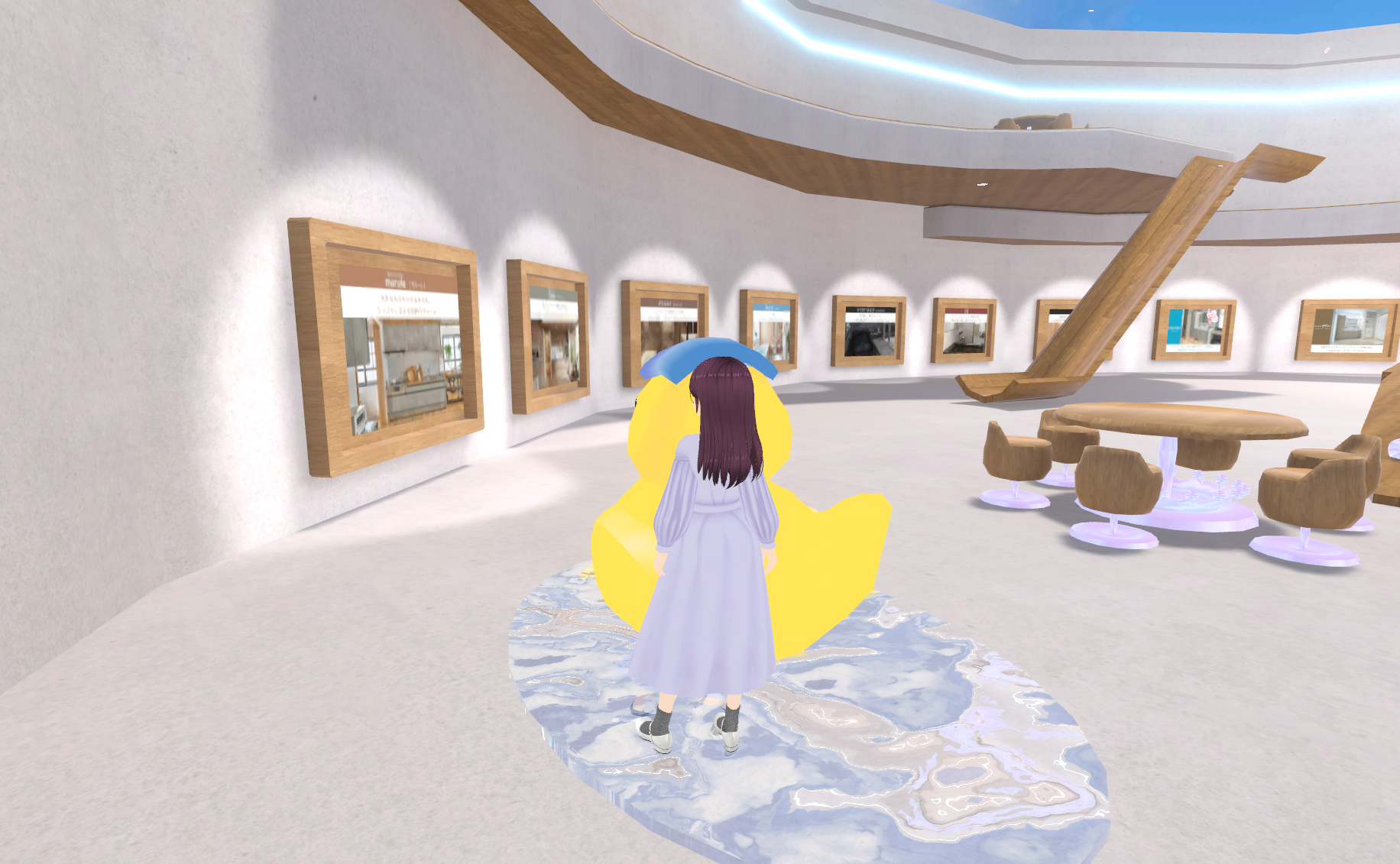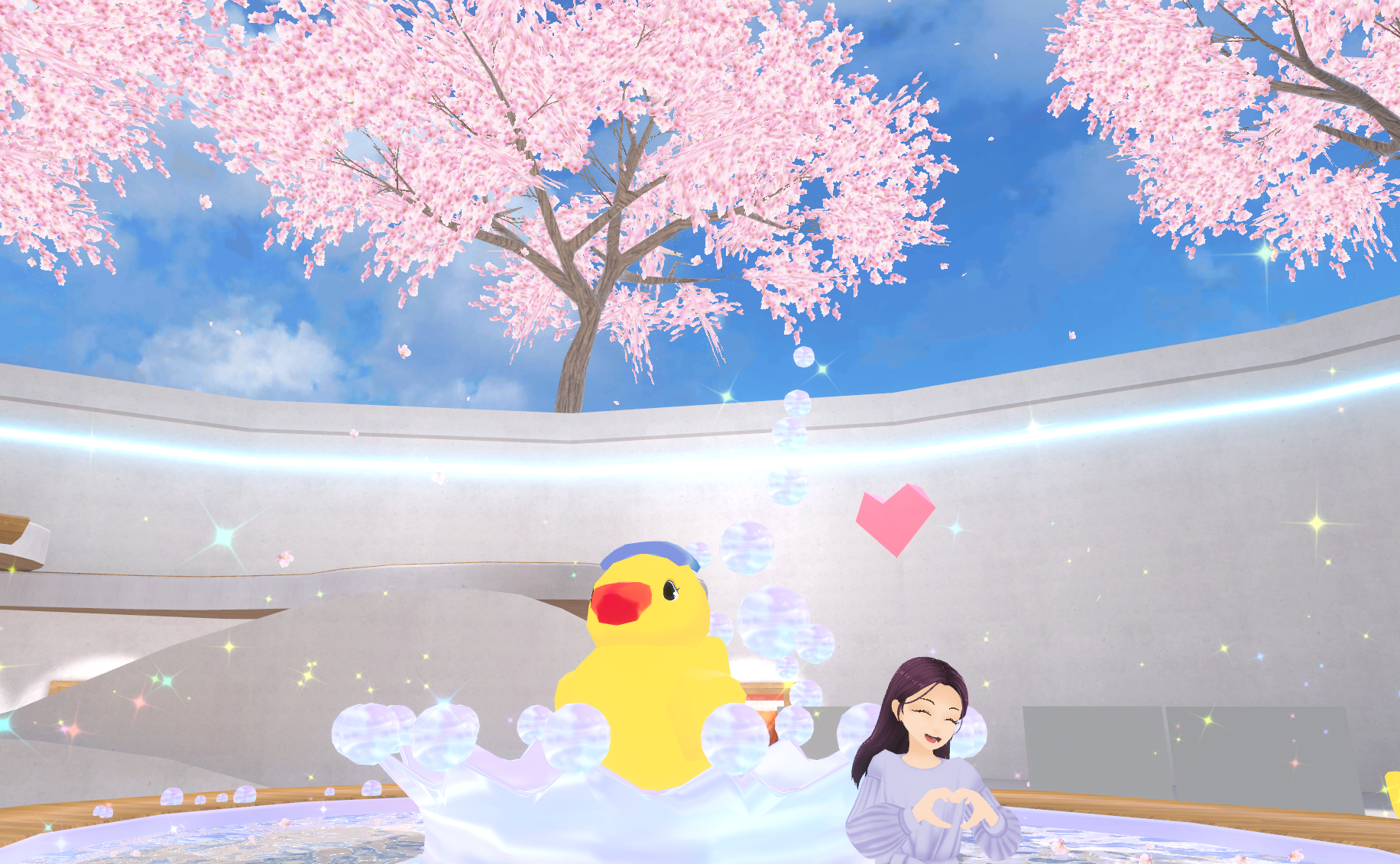 バーチャル空間の特性を活かし、内観を冬仕様から「桜」が舞う春仕様へと刷新しました。訪れるたびに季節の移ろいを感じられる新鮮な体験を提供します。