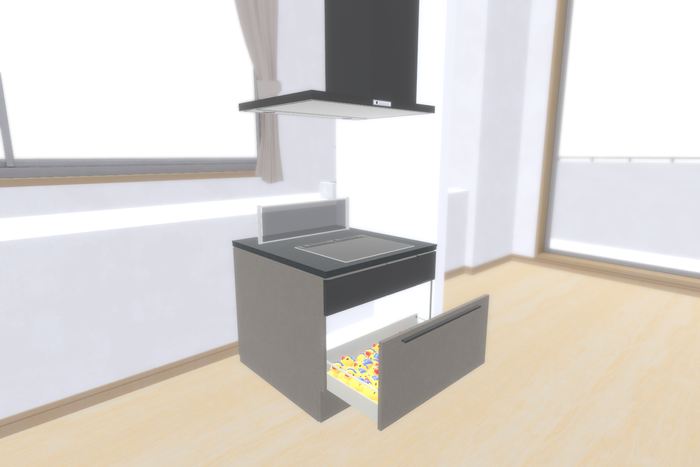 豊富な収納力と上質な高級感を演出するデザインバリエーションで人気のシステムキッチン「マルーレ」をクラフトアイテム化しました。シンク・調理台・コンロに3分割して配布いたします。3つのクラフトアイテムをすべてコンプリートすると自分だけのキッチンを完成させることができる体験型特典です。