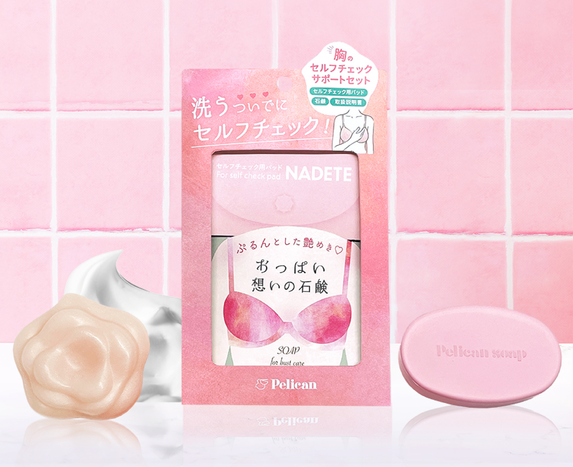 株式会社ペリカン石鹸(本社:東京都港区/代表取締役社長:渋井 伸和)は、石鹸で身体を洗いながら行う“胸のセルフチェック”を推奨します。この活動の一環として、しこりパーツのリアルな感触を再現し、セルフチェックをサポートする『セルフチェック用パッドNADETE(ナデテ)』を開発しました。2024年10月1日(火)より『NADETE』と『おっぱい想いの石鹸(旧商品名:愛されおっぱい)』のセットアイテムを数量限定で発売します。