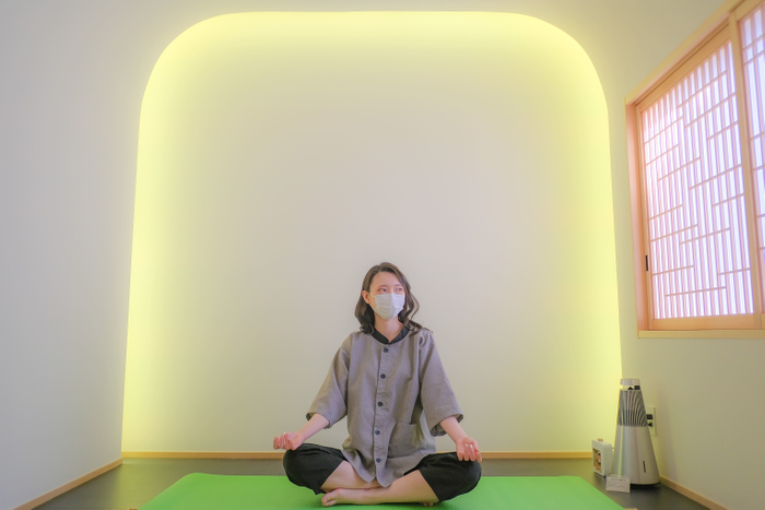 癒しを体だけでなく、心からもという想いから、どこまでもシンプルに、ミニマルに削ぎ落とした瞑想室「無(む)」では、呼吸を整え、頭の中をクリアにする瞑想体験もできます。