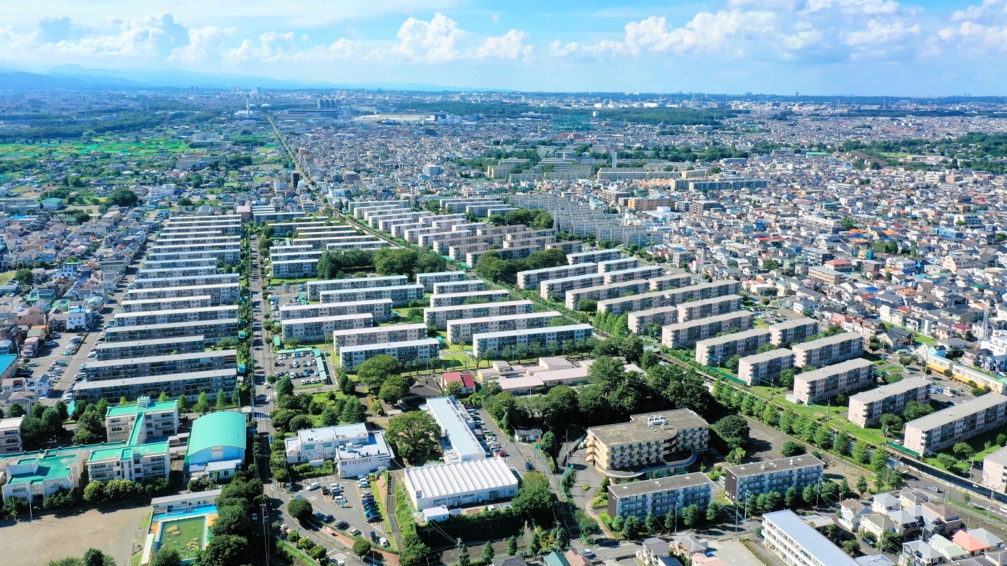 1965(昭和40)年から相模原市に計画的に開発された相武台団地(相模原市南区)。開発面積31.4ha、賃貸住宅11棟446戸、分譲住宅82棟2,080戸、総戸数約2,500戸の複合団地です。