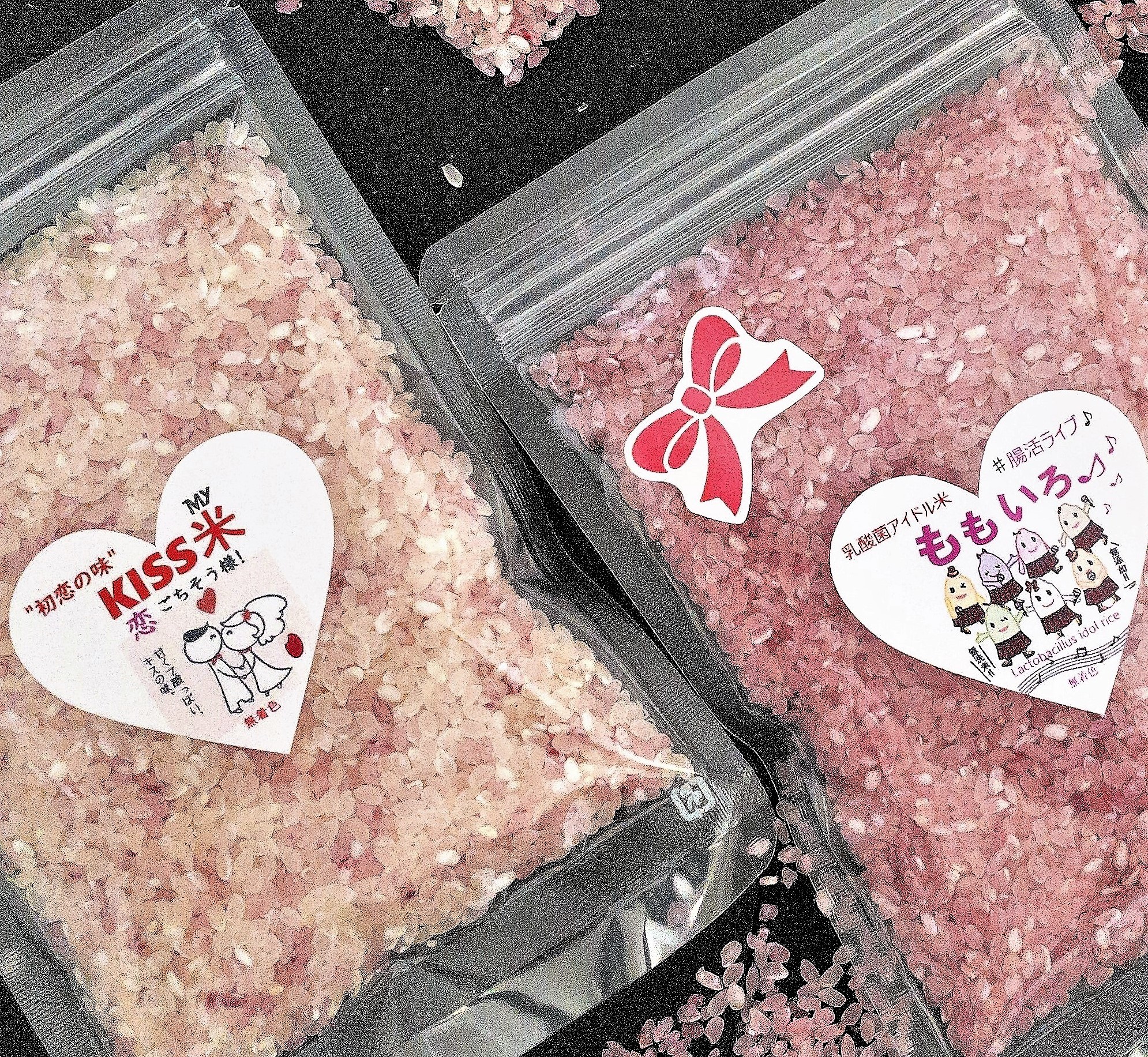 そこで、お米の魅力化を推するため、女子のニーズにマッチしたキーワード「美容」「腸活」「ピンク」「エンタ」などを勘案し、初恋の味「KISS米」と乳酸菌アイドル米「ももいろ」の開発・販売に至りました。
