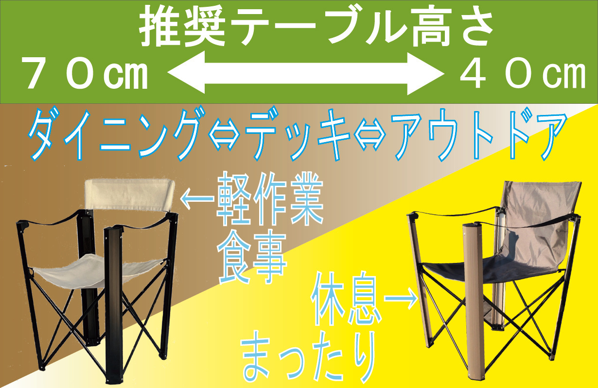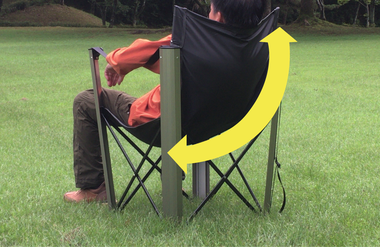 収納袋に入れるのではなく背座シートを脚支柱に収納するアタラシイかたちの提案です。
