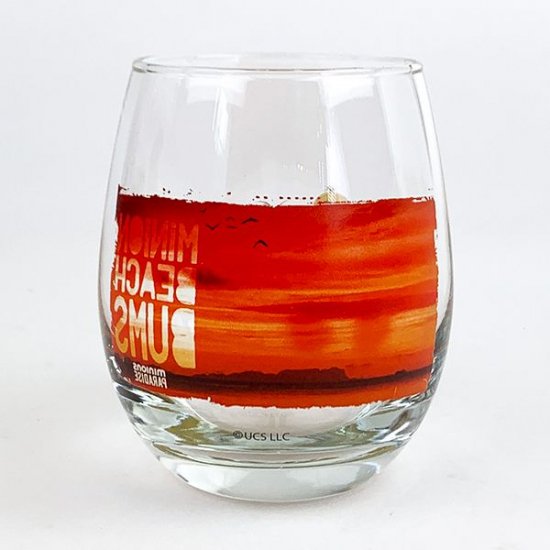 サンセットを背景に集まっているケビンたち。とってもかわいいデザインのグラスで、曲線を描いたフォルムもきれいです。
