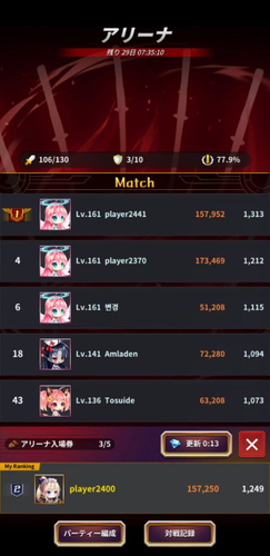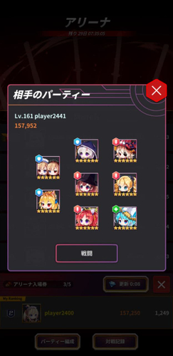 アリーナとは、最大8体のキャラクターで自分だけのパーティを組み、ユーザー同士で競い合うPVPコンテンツです。