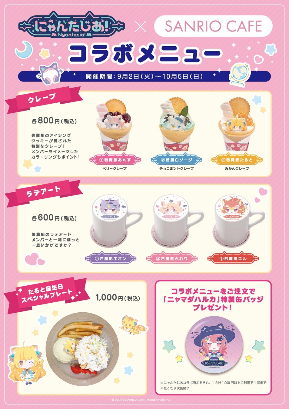 にゃんたじあ!が2025年9月19日(金)〜9月28日(日)で行われる、『Sanrio Virtual Festival 2025 Summer Edition』へ出演し、VRChat内でファンミーティングを開催することが決定しました!