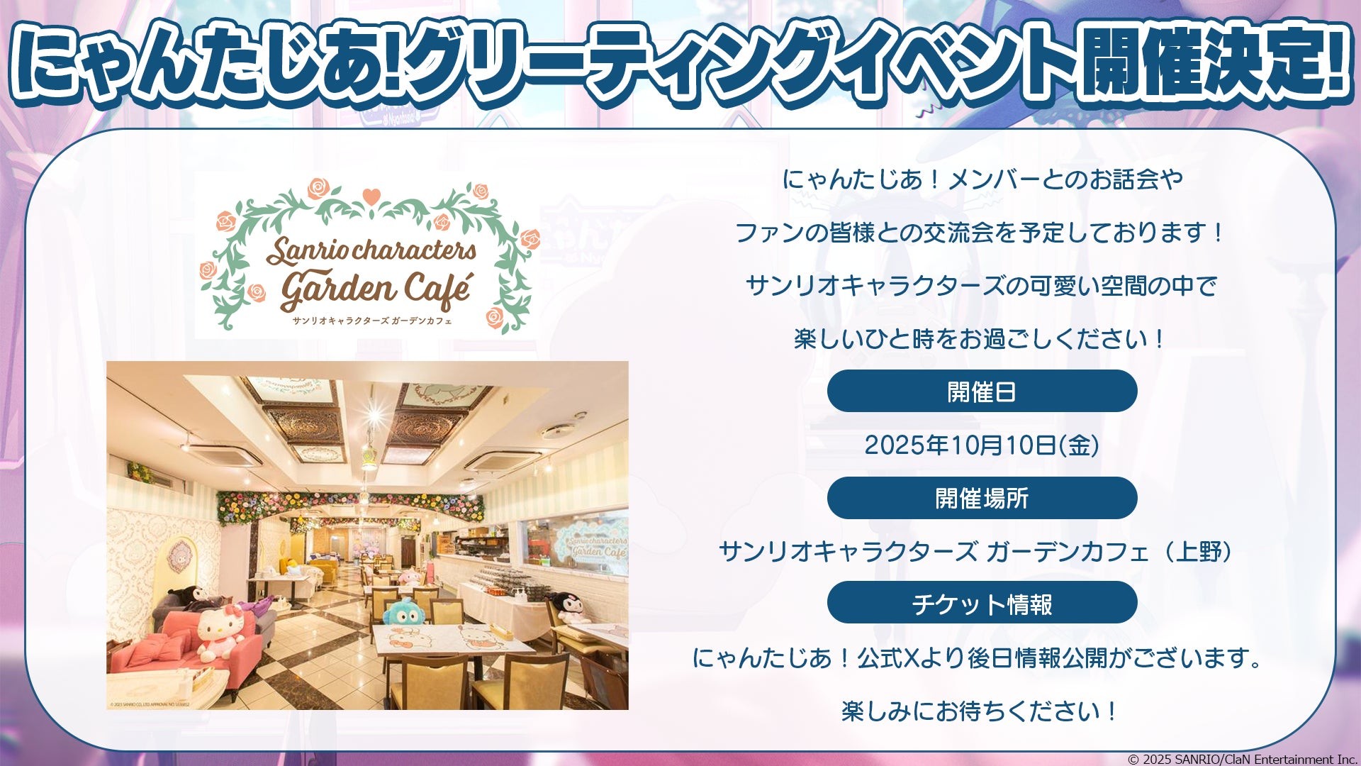 その他詳細につきましては今後にゃんたじあ!公式Xより後日発表します。