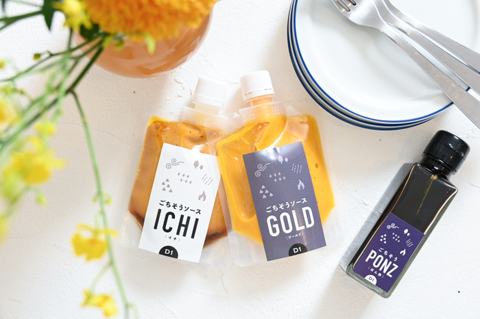 生ドレッシング「ごちそうソース」を販売。ごちそうソースは、有機野菜と厳選した調味料(添加物や遺伝子組み換え作物を使っていない)で手作りした、生ドレッシングです。おうちごはんが手軽にごちそうになり、楽しい食卓になることを目指しています。