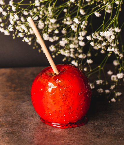 フードロスに向き合う、果物とお菓子のお店。長野県のある減農薬で生産されている農家さんによって創られているりんごを使ったりんご飴を販売。長野県三水から産地直送のこだわりのりんごは香り高く、ちょうどいい甘み、シャキシャキの食感を味わえます。この時期にしか食べられない旬を迎えたりんごは記憶に残る美味しさです。