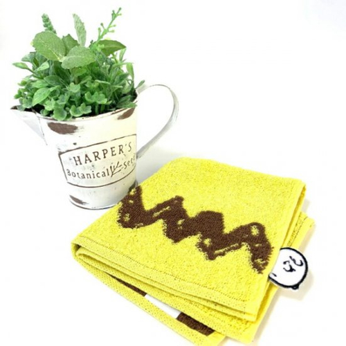 ミニタオルに、チャーリーブラウンのネーム入りのシンプルなデザインが加わりました。しかも、サイドにひょっこり覗くチャーリーブラウン付き♪広げても折りたたんでもかわいくてオススメです。