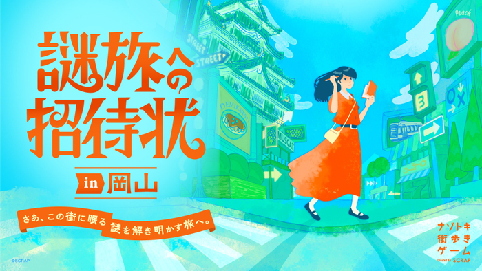 全世界で累計1,500万人以上を動員しているリアル脱出ゲームを企画制作する株式会社SCRAP(本社:東京都渋谷区、代表:加藤隆生)は、岡山駅周辺を舞台にしたナゾトキ街歩きゲーム『謎旅への招待状 in 岡山』を2026年2月20日(金)より開催することを発表いたします。