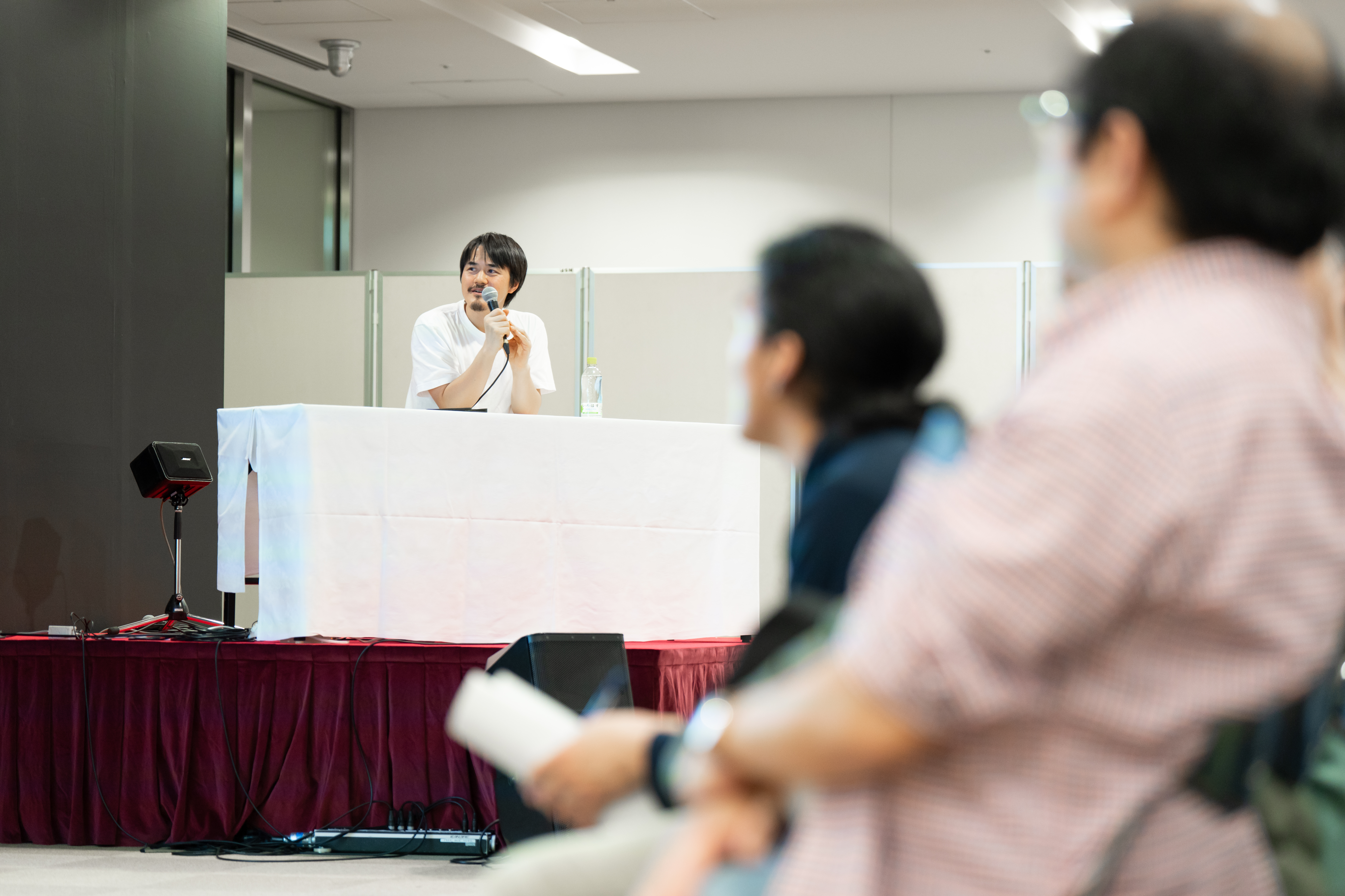 田中は、ナチュラルな芝居がアニメ関係者の中でも話題になっていたことに触れ、「どのようにそう作っていったのか」と質問すると、「オーディションの中で自然な声が出せる、ナチュラルな芝居ができる人を選んだ」と述べ、演技について特別な指示はなかったと答えました。「結果的に声優ではなくて実写の俳優を選んだことになるので、作品全体がキャラクターと馴染んだと思う」と回顧しました。