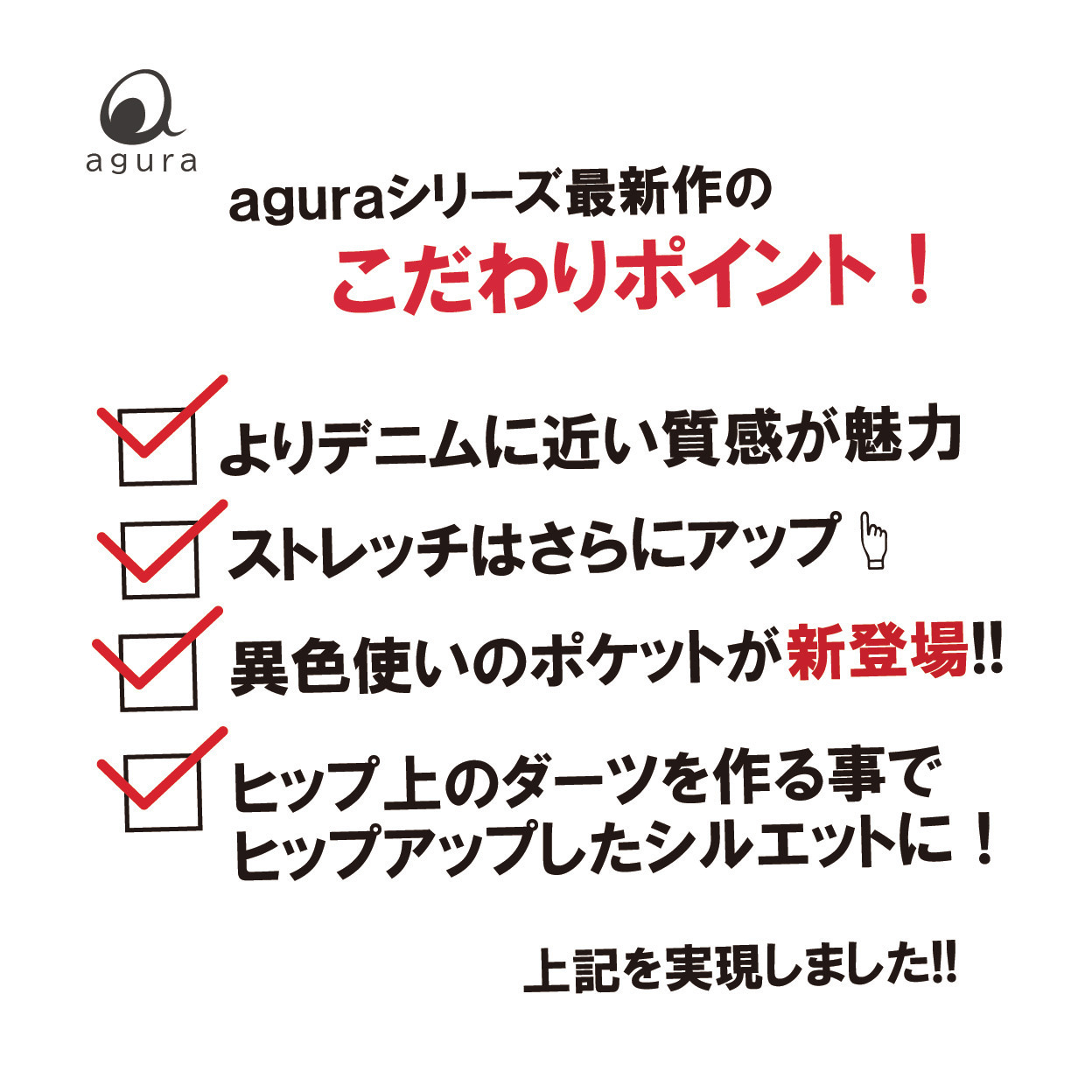 Makuakeにて累計5,700人に支持いただきリピート率48%のaguraシリーズの「テラストレッチパンツ」。今回発売する商品は、前回よりも伸縮性・デニム感をアップさせ、スウェット×デニムの良いとこどりをした夢の『ハイブリッドパンツ』です。生地などを1から見直し、さらに進化させました。