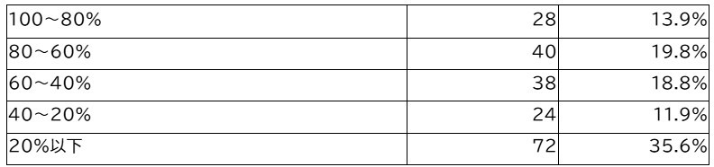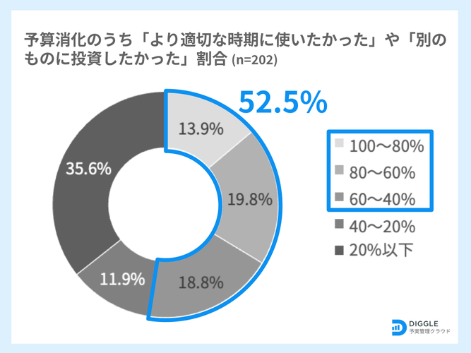 Q. 「予算消化」のうち、「より適切な時期に使いたかった」や「別のものに投資したかった」と思われる支出の割合はどの程度ですか。(n=202)