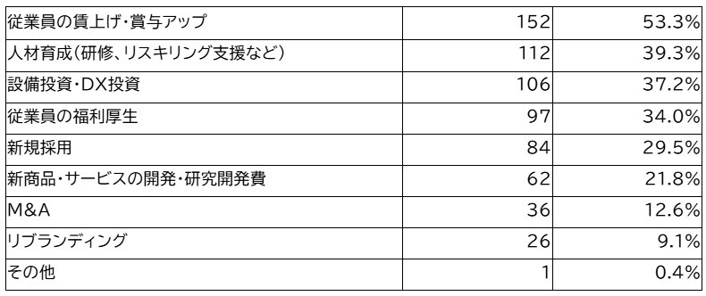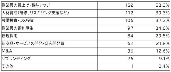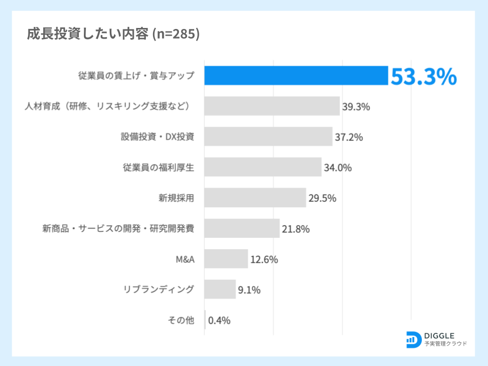 ・成長投資したい内容としてもっとも挙がったのは「従業員の賃上げ・賞与アップ(53.3%)」