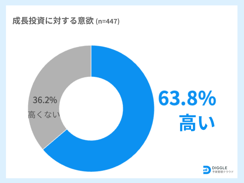 Q. 「成長のための投資(設備投資、新規事業、R&D、人材投資など)」に対する意欲として、もっとも当てはまるものをお選びください。(n=447)