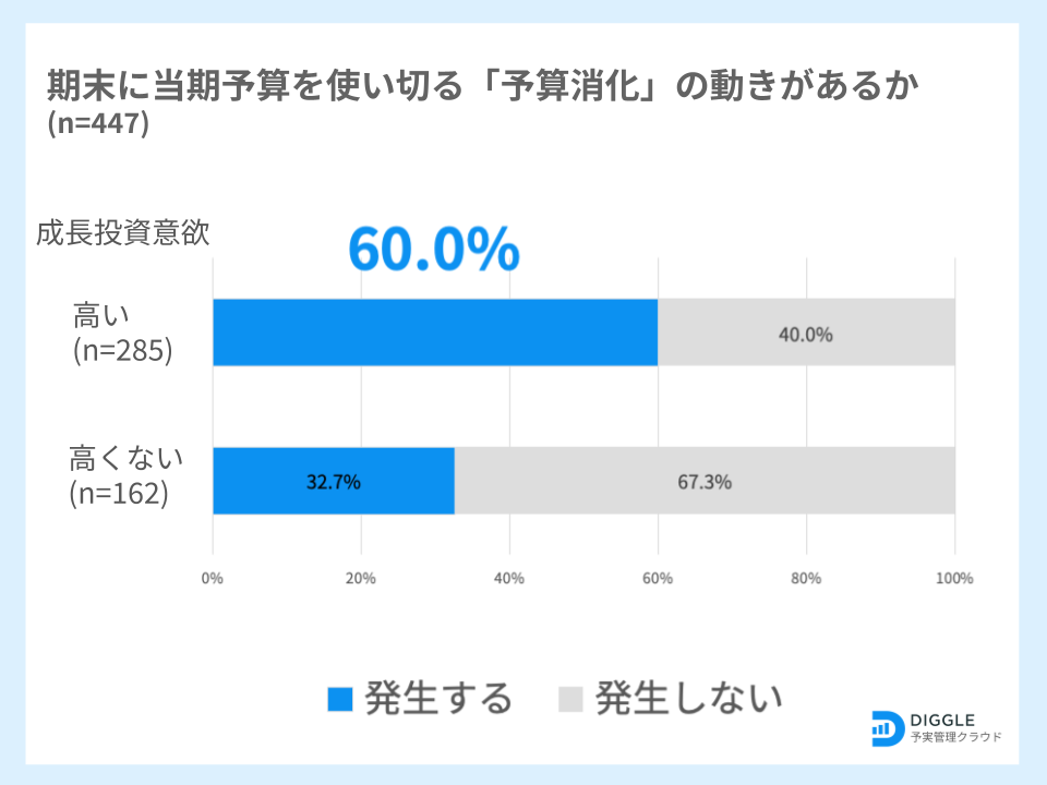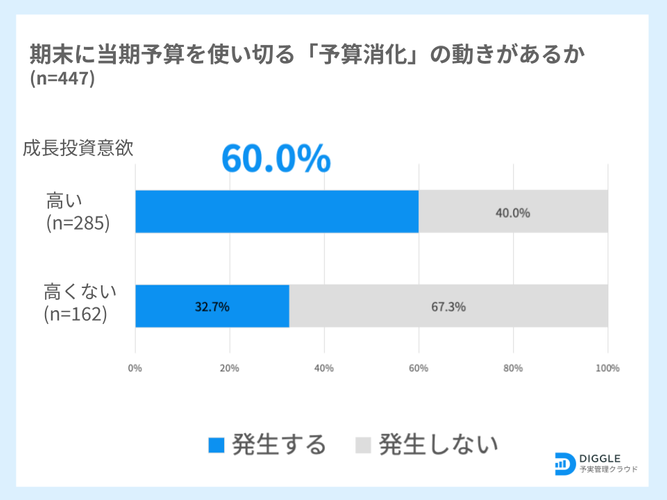 ・予算消化は、成長投資意欲が高い企業で60%、成長投資意欲が高くない企業で32.7%発生
