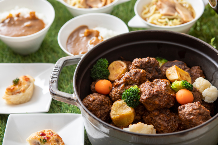 【温製】若鶏のグリルとポテトのガーリックバター炒め / コーンコロッケのゼブラ柄サンド / 牛スジ肉のトロトロカレー / フライドポテト・ナゲット・タコ焼きなど揚げ物(日替わり3種類) / しましまパスタボロネーゼグラタン / 豚の照り焼きパイ / くまさんのちらし寿司 / 特製ごろごろ煮込みハンバーグ 八丁味噌風味