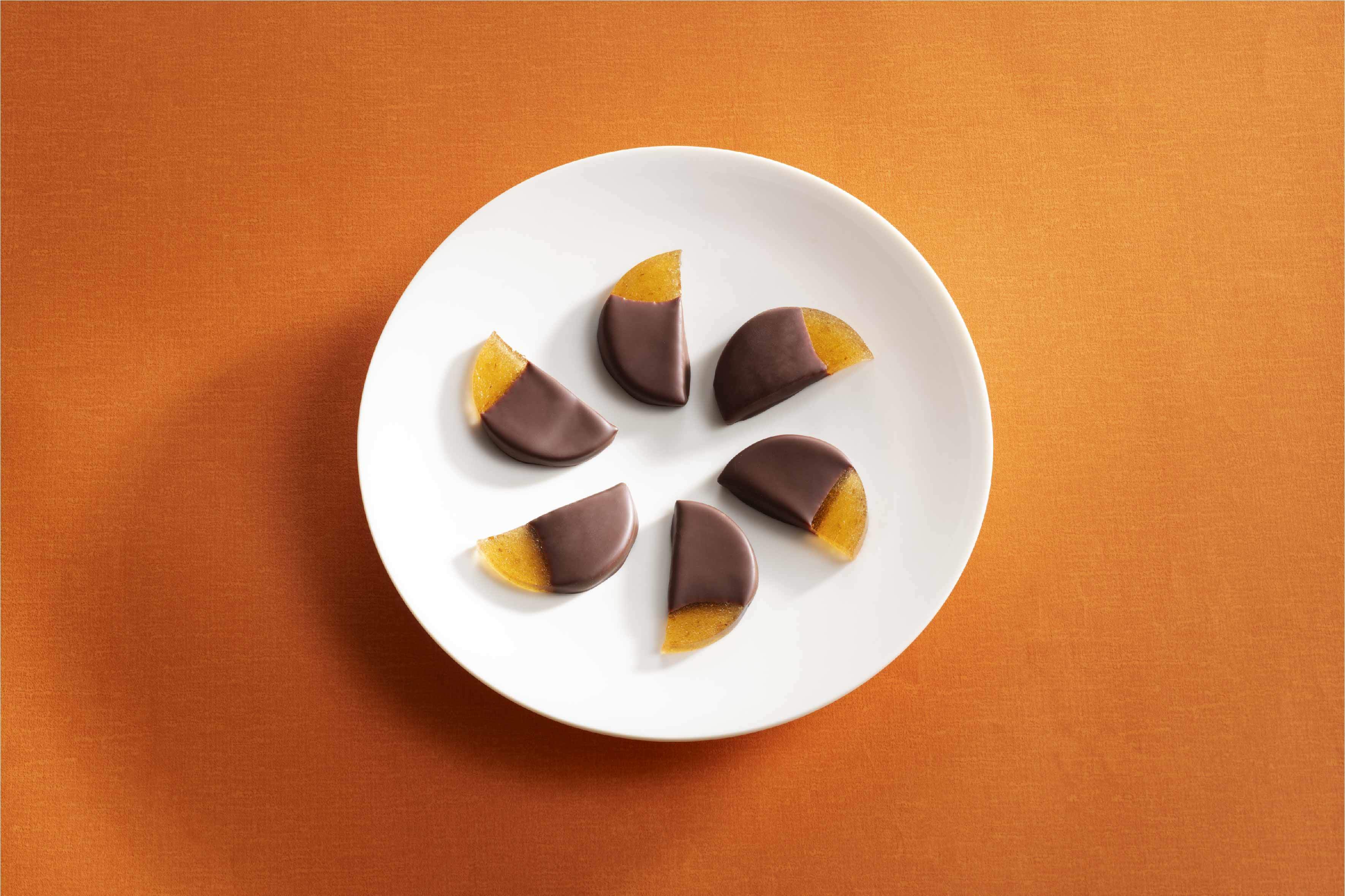 代表銘菓「柿羊羹」の濃厚な甘みに合わせ、厳選したショコラをまとわせました。