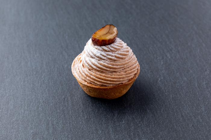 栗本来の甘みを生かすためにあえて無糖のクリームに、アクセントでカシスをいれることによりグッと大人の味わいに。やわらかなもんぶらんとタルトの食感がクセになる一品です。