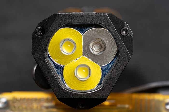 2)メインライトは、デュアルSST-36F LED (5000K/昼白色) を搭載。明るさ最大1300ルーメン