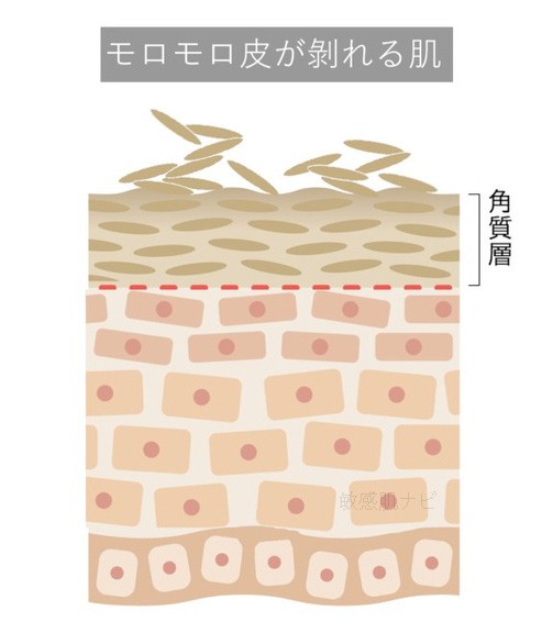 今回の悩みのように、**目に見えて皮がモロモロと取れるほど、角質細胞が大きくまとまって剥がれる**、正常な剥がれ方ではありません。
