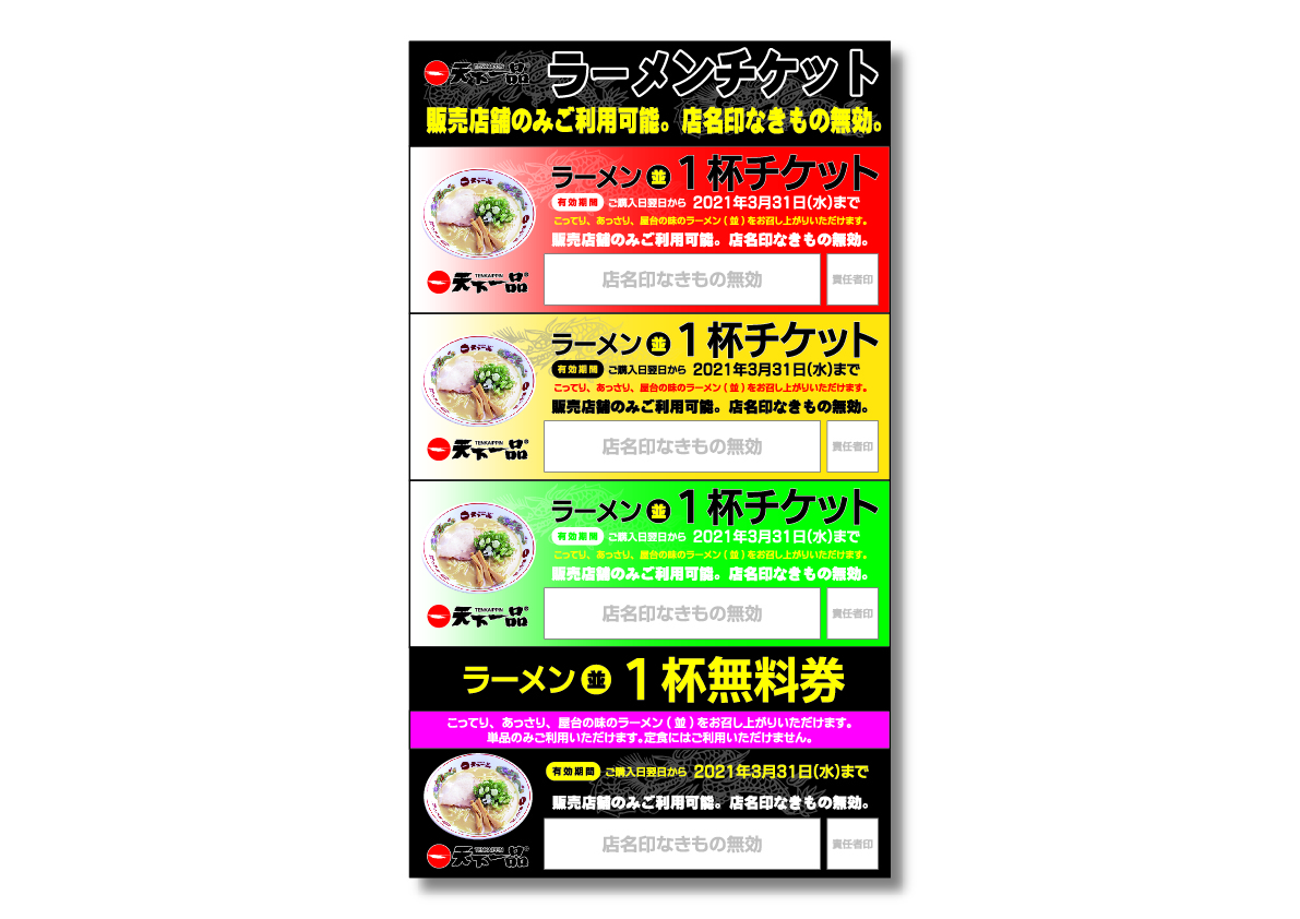 購入店舗でのみご利用いただけるお得なラーメンチケット