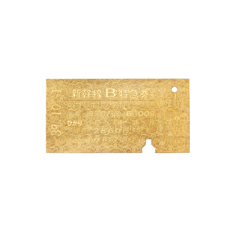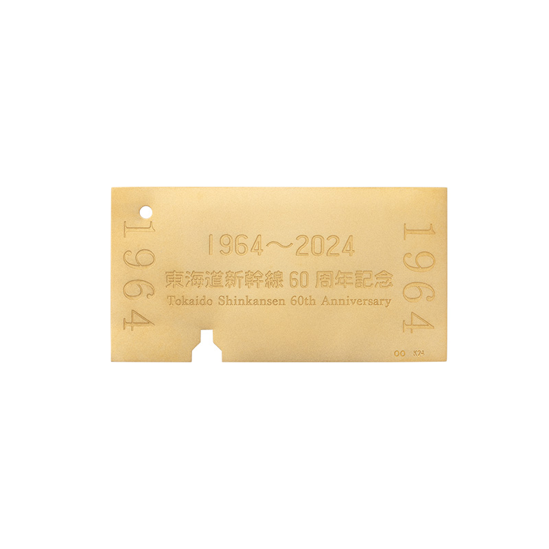東海道新幹線開業60周年を祝し、新幹線開業時の「硬券きっぷ」をできる限り精微に再現した記念品です。60周年の歴史に相応しく、贅沢に純金(K24)にて製作される特別なアイテムです。