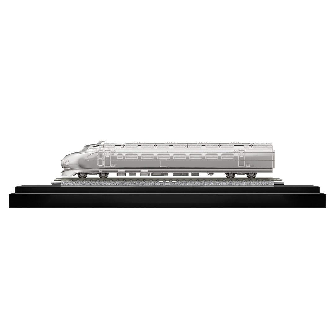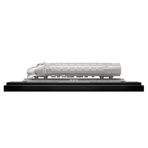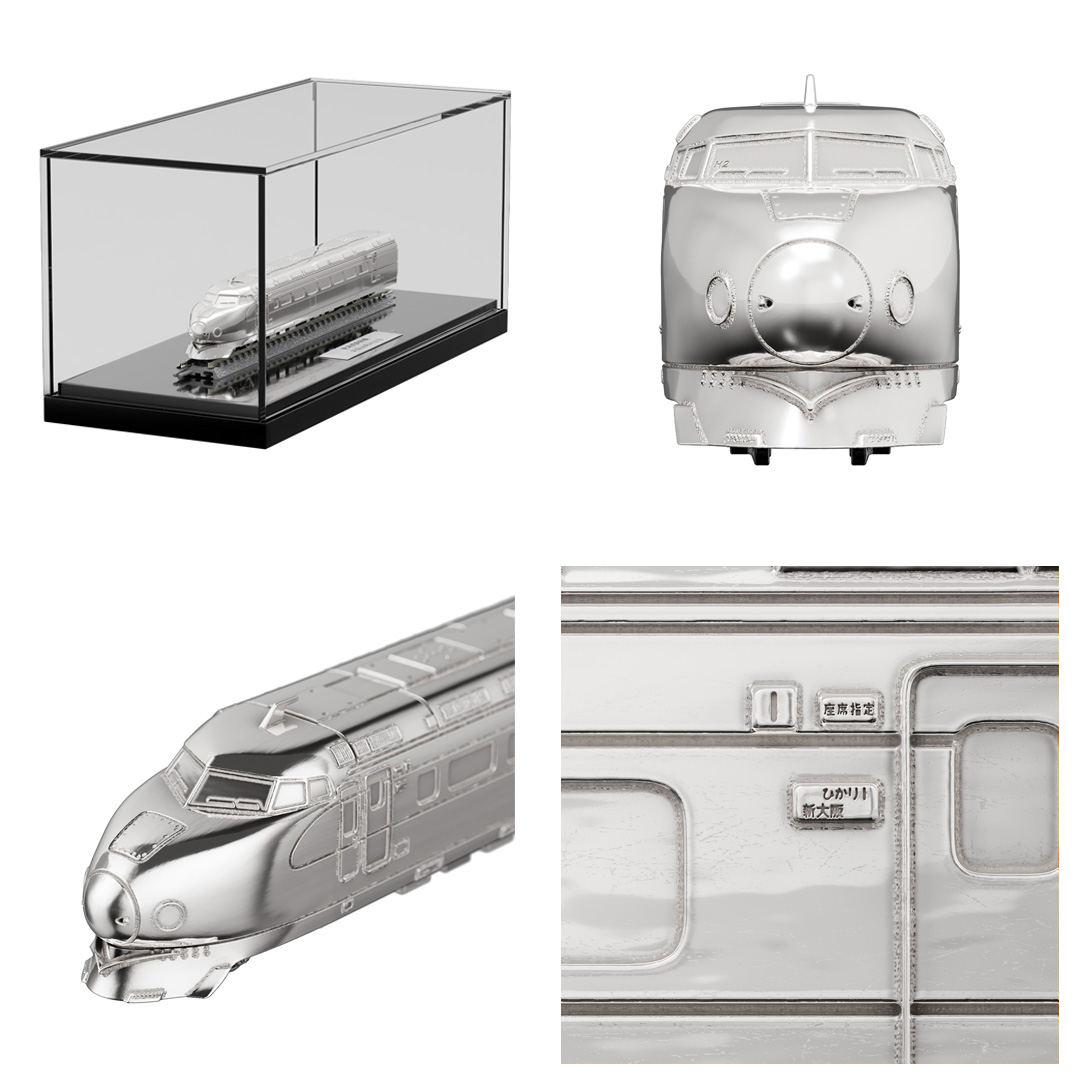 ゴールドモデルと同様に「ひかり1号」をシルバー925で製作したモデルです。Nゲージサイズで製作しており、付属のレールに乗せた状態で展示可能です。なお、新幹線の後部車輛付近に素材の刻印及びシリアルナンバーが打刻されます。また、オリジナルの専用展示ケースも付属いたします。