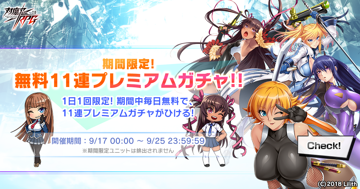 『対魔忍RPG』にて五車祭ガチャをお知らせいたします。さらに期間限定無料11連プレミアムガチャが開催予定!