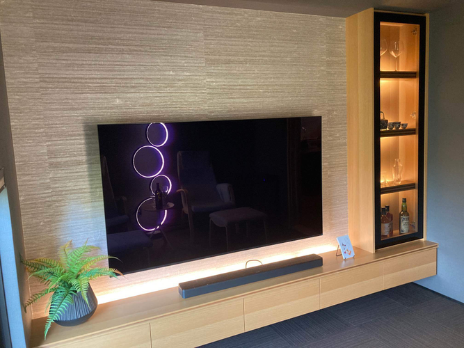お酒を楽しむ際の過ごし方も、人それぞれですよね。家族での会話を楽しんだり、好きな音楽を流したり、お気に入りの映画を観たりする方も多いのではないでしょうか。「山本さんち。」のように、大画面のテレビを置いたり、自然を眺めながらくつろぐこともできるように観葉植物を置いたり、庭の緑を見られる小窓を設けたりするのも良いですね。読書を楽しむ人は自分用の図書館スペースとして本棚を、パソコンを使う方は大きめのテーブルを置くなど、好きなことをしながらお酒を楽しめる空間にしてみてはいかがでしょうか。