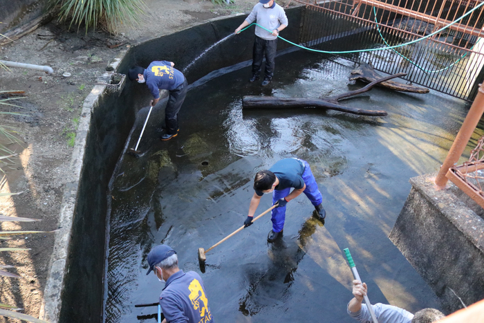 分園のワニ放流池で行われる大掃除は、1971(昭和46)年の分園開園当初から始まり、毎年恒例となっております。