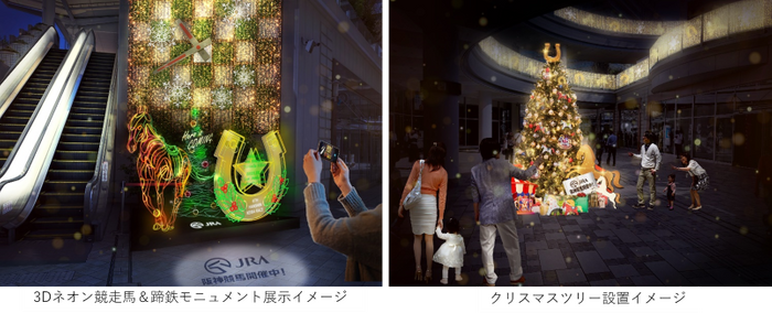 あべのキューズモールでは、「JRA阪神競馬場」協賛のスペシャルイルミネーションを実施し、ネオンで彩られた3D競走馬や蹄鉄モニュメントが登場します。その他、キューズモールギフトカード総額500万円(税込)分が抽選で当たるキャンペーンの実施や、1000円分がオトクになるプレミアムギフトカードを販売します。