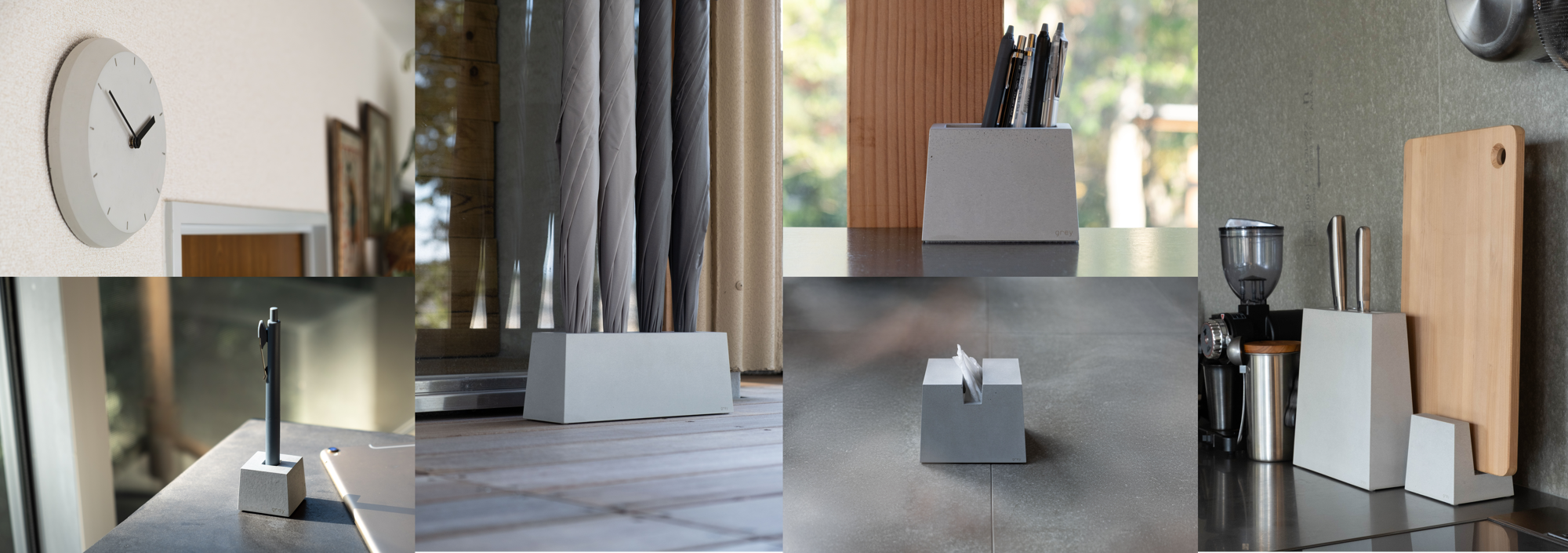 インテリア雑貨市場では、プラスチック、木材、金属といった素材を用いた製品が主流です。その中で、セメントを素材とした製品は多くありません。気泡や色ムラといった独特の表情があり、その重さや質感が生み出す存在は唯一無二で他の素材にはない魅力があります。