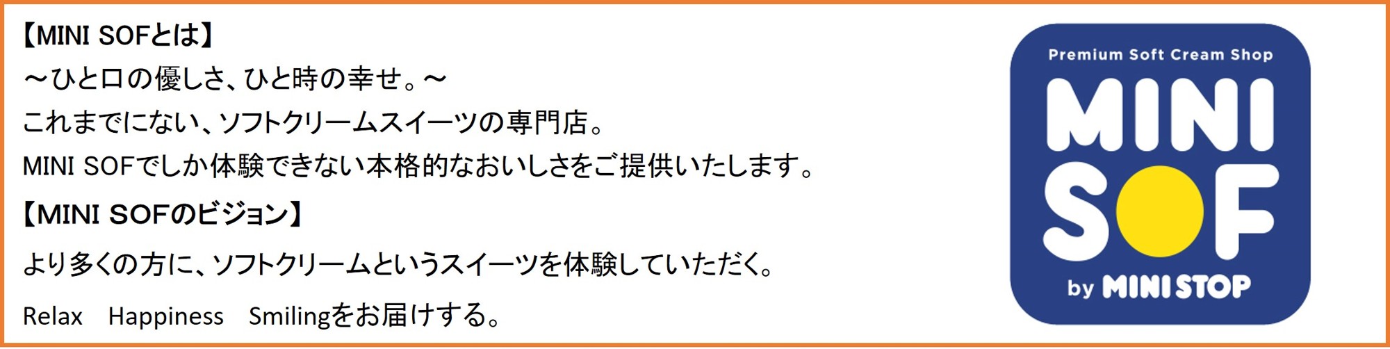 MINI SOFでは今後も、MINI SOFでしか体験できない本格的なおいしさと、ひと時の幸せをお届けいたします。