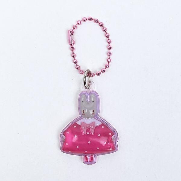 広がるピンク色の洋服が、ポップなカラーでガーリーさも感じます。コスメポーチに付けるのにもいいかもしれません!