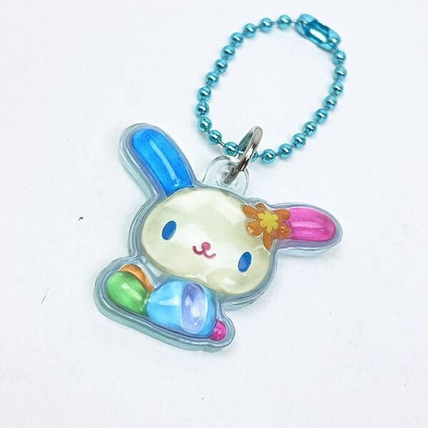 お次にご紹介するのは、「サンリオ ウサハナ ぷっくりったいプチボールチェーン」。サイズ:3.4cm×2.4cm×0.7cm。レインボーカラーがつやつやになって目を惹きつけられますね!