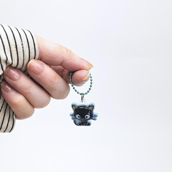 お次は、「サンリオ チョコキャット ぷっくりったいプチボールチェーン」。サイズ:3.4cm×2.4cm×0.7cm。全身真っ黒な毛と、くりっとした目つきが可愛すぎる。