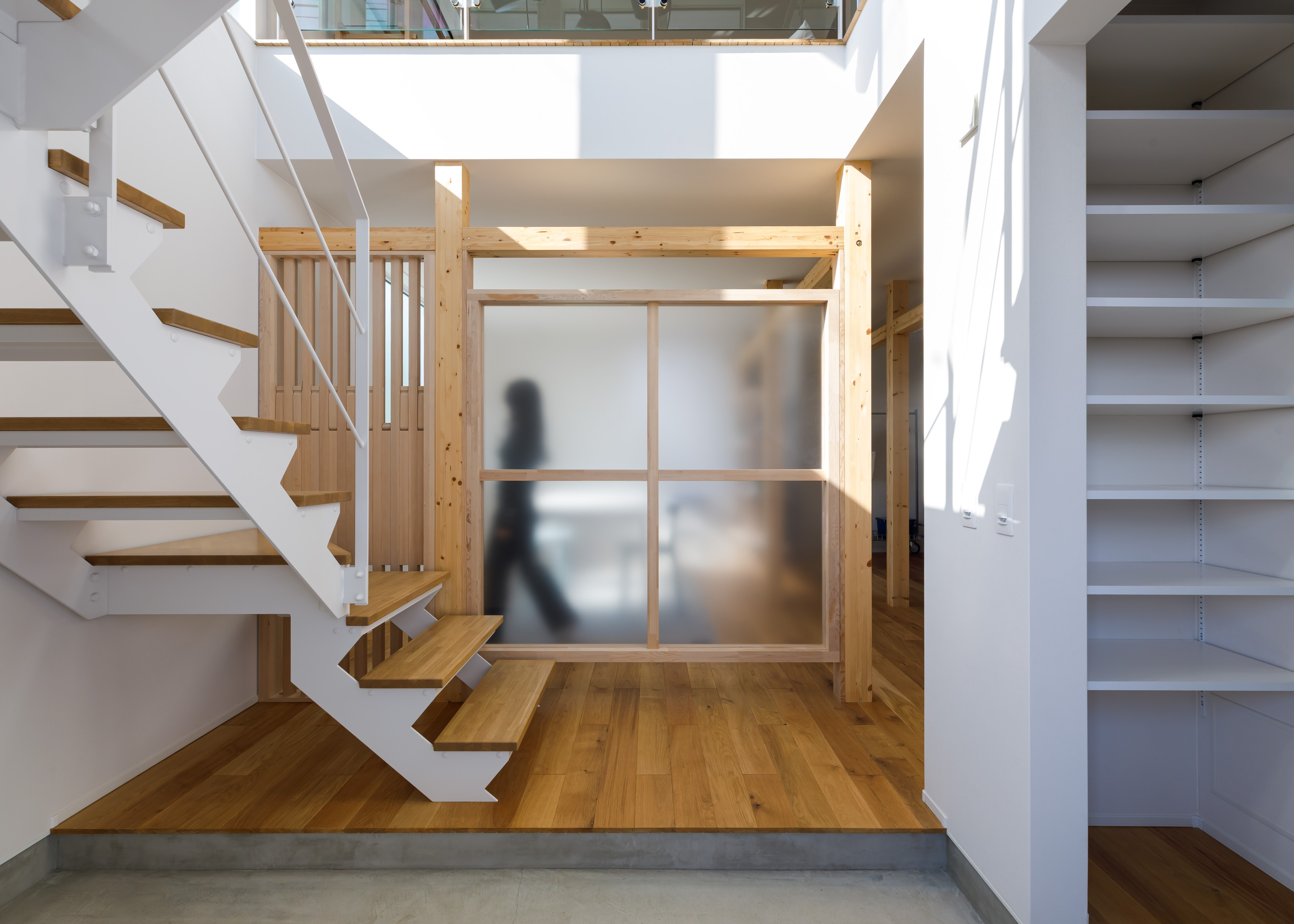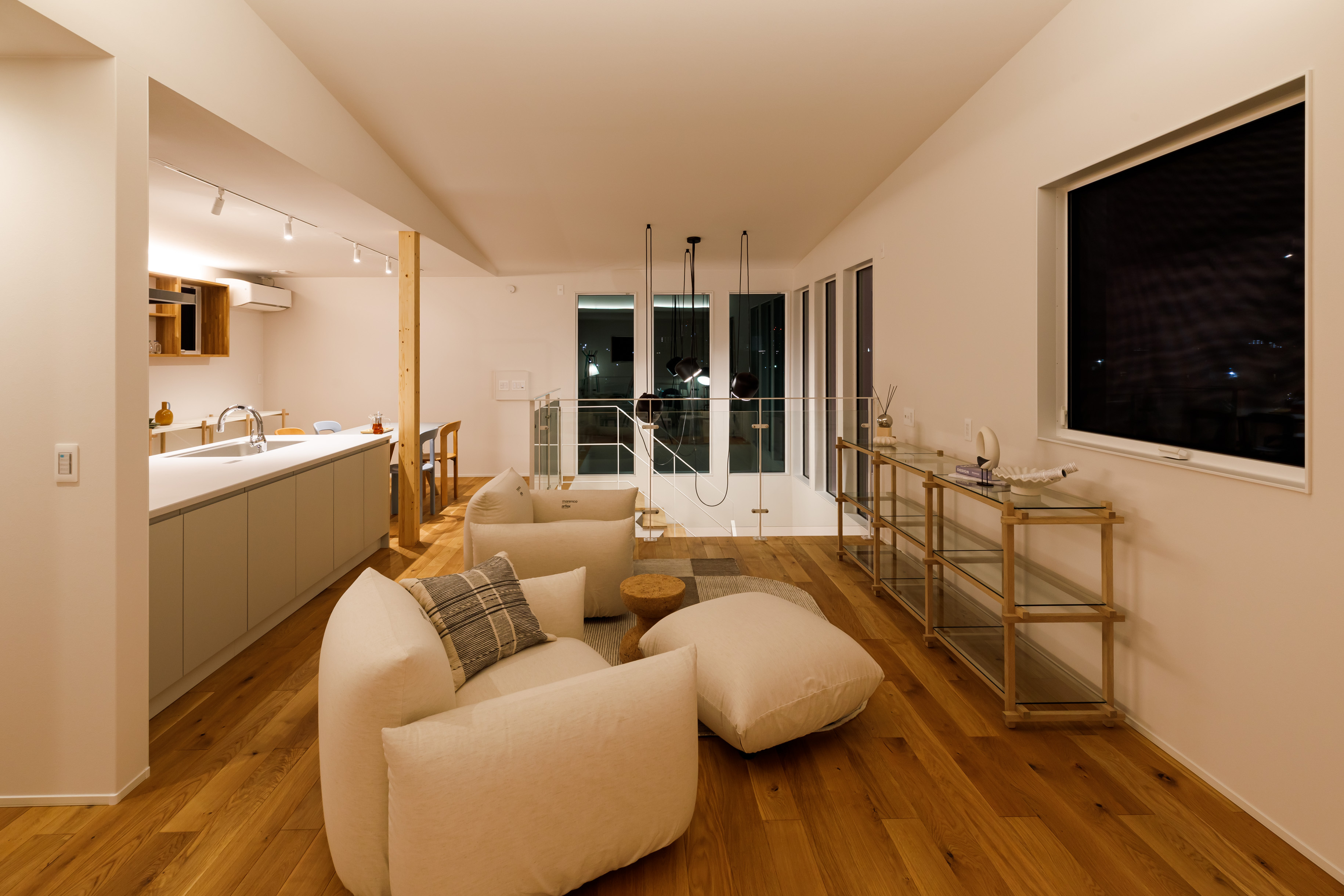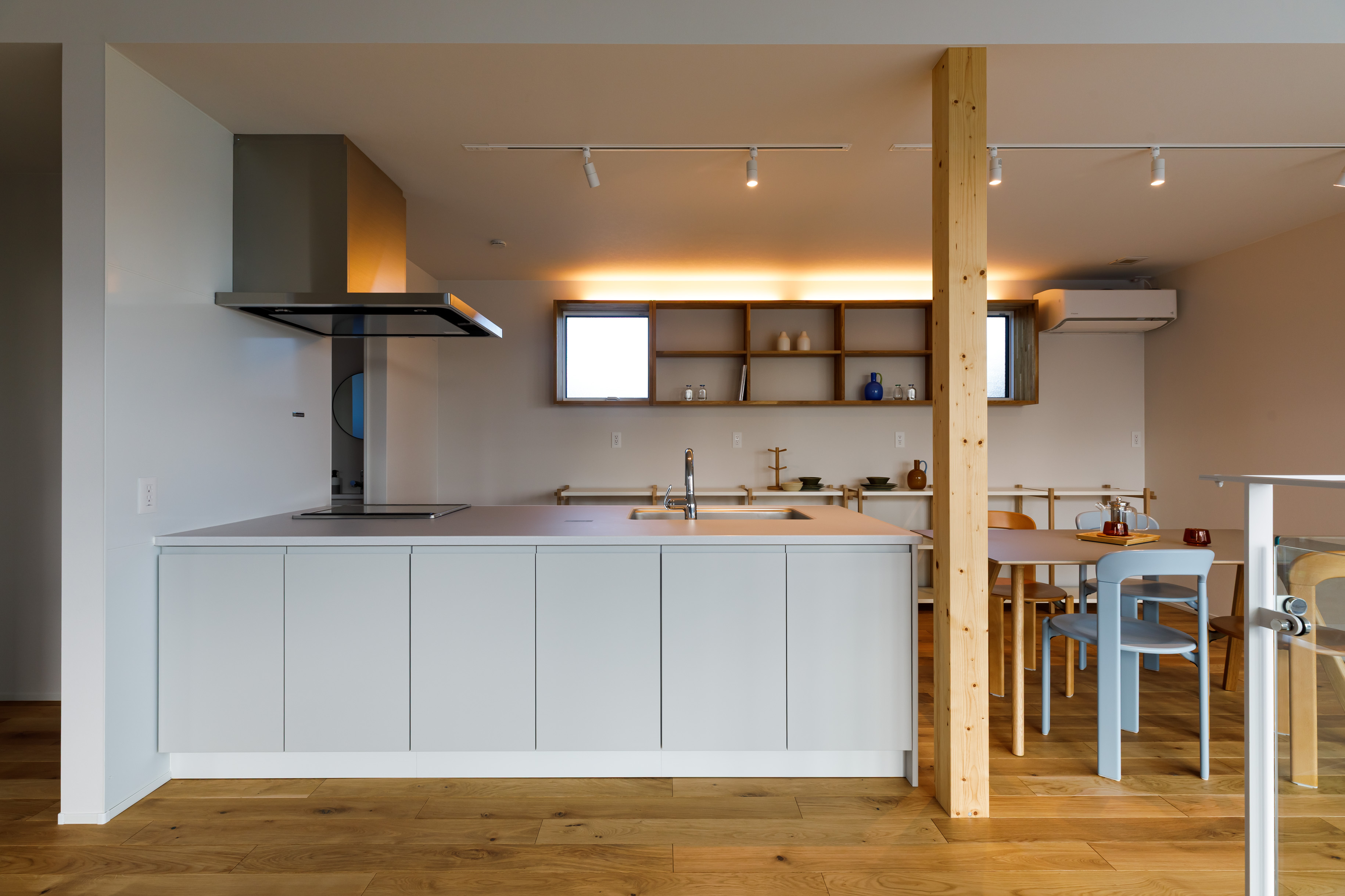 柱と柱を繋ぐ新発想のシステム「Flxy」を採用。壁でも家具でもないこのプロダクトにより、棚や間仕切り、ワークスペースを自分自身で簡単に設置・変更できます。引っ越すことなく、その時の家族の距離感に合わせて「今、必要な空間」を創り出せます。