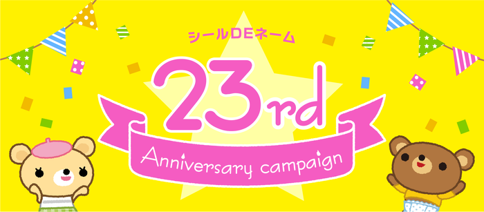 『シールDEネーム』の23周年を記念してキャンペーンを開催。今回は【第1弾】として、通常お値下げしない「布ハレちゃん。」を特別値下げ。その他も、さまざまな商品をお得価格でお届けしています。