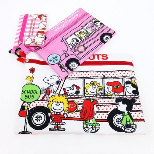 前回はスヌーピーまみれの3連ポーチをご紹介しましたが、今回はスヌーピーだけではなく、ピーナッツの仲間たちも描かれたかわいいポーチを見ていきましょう。