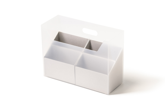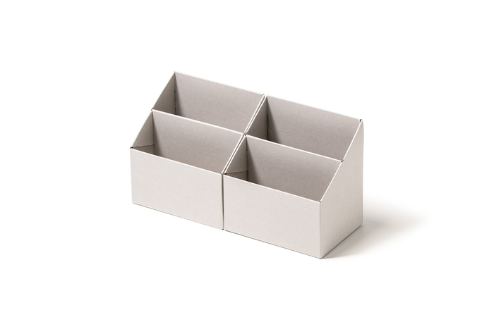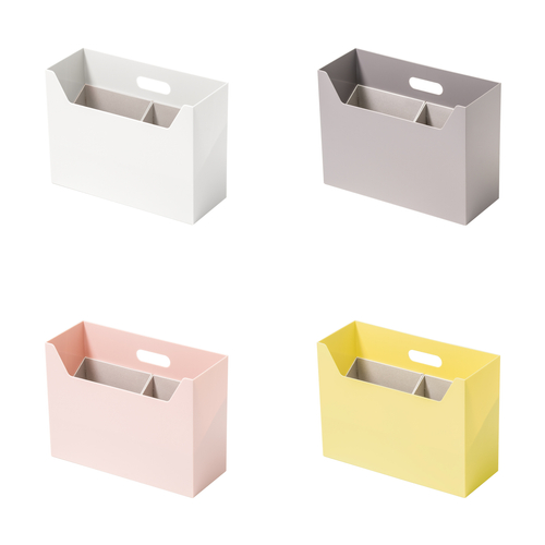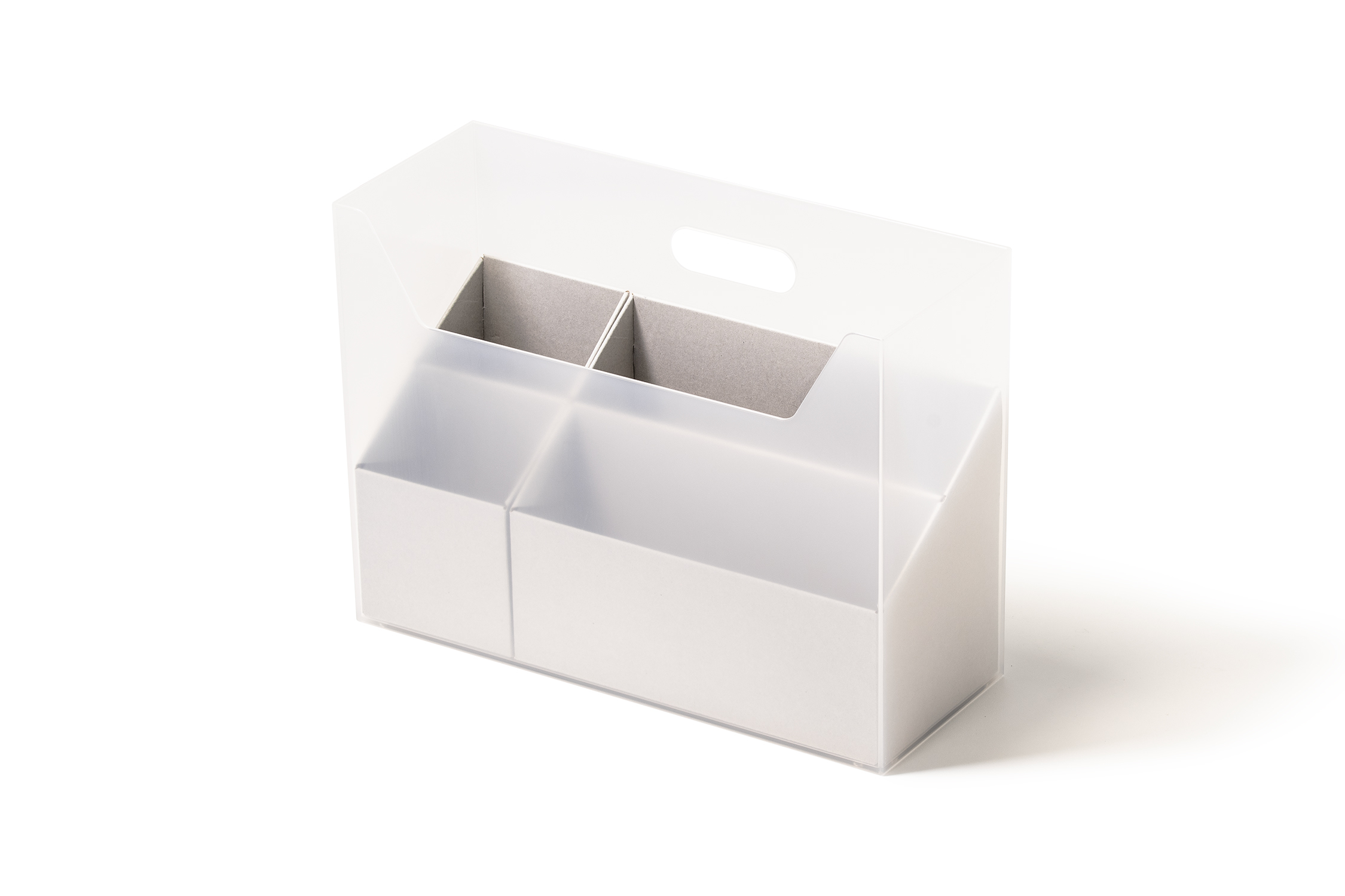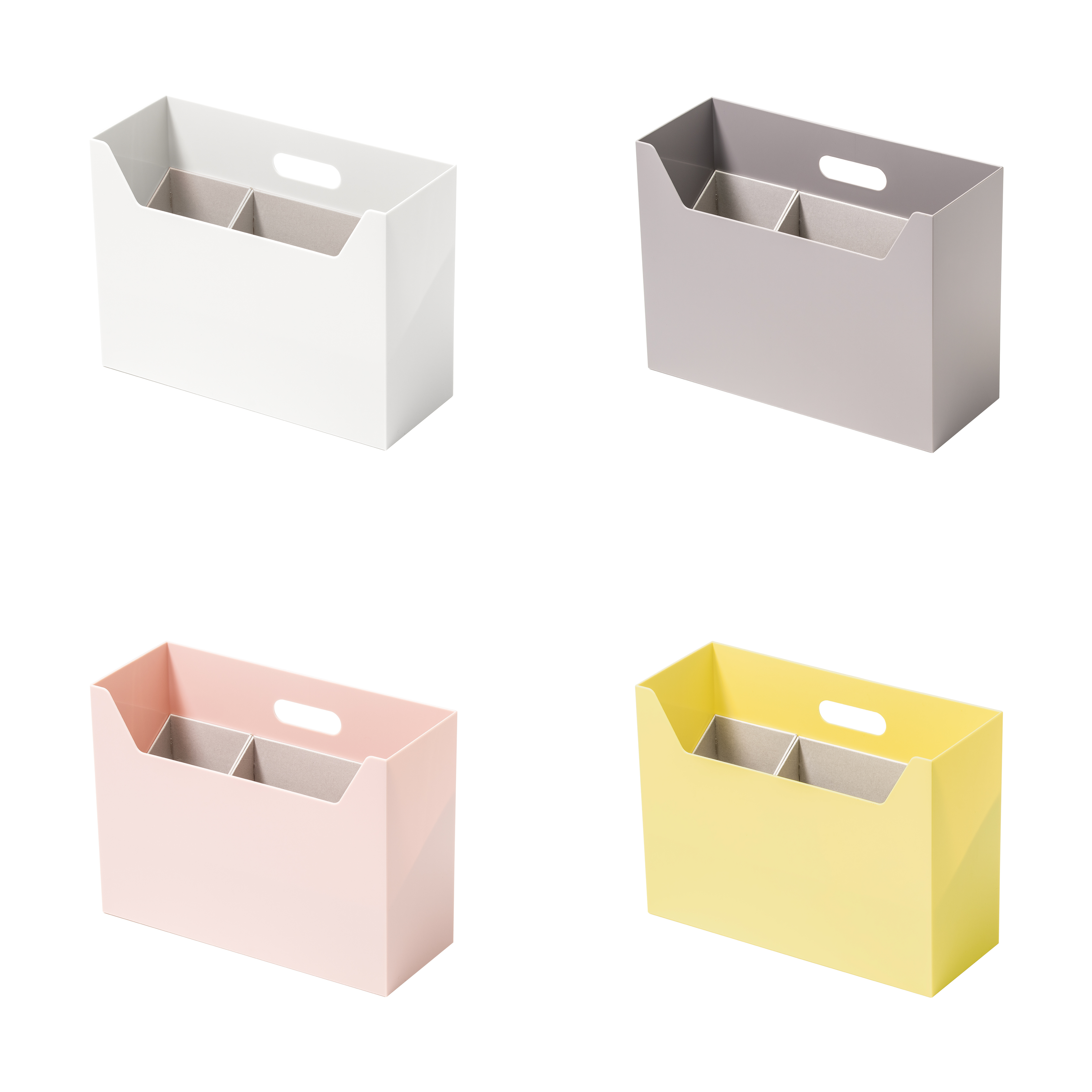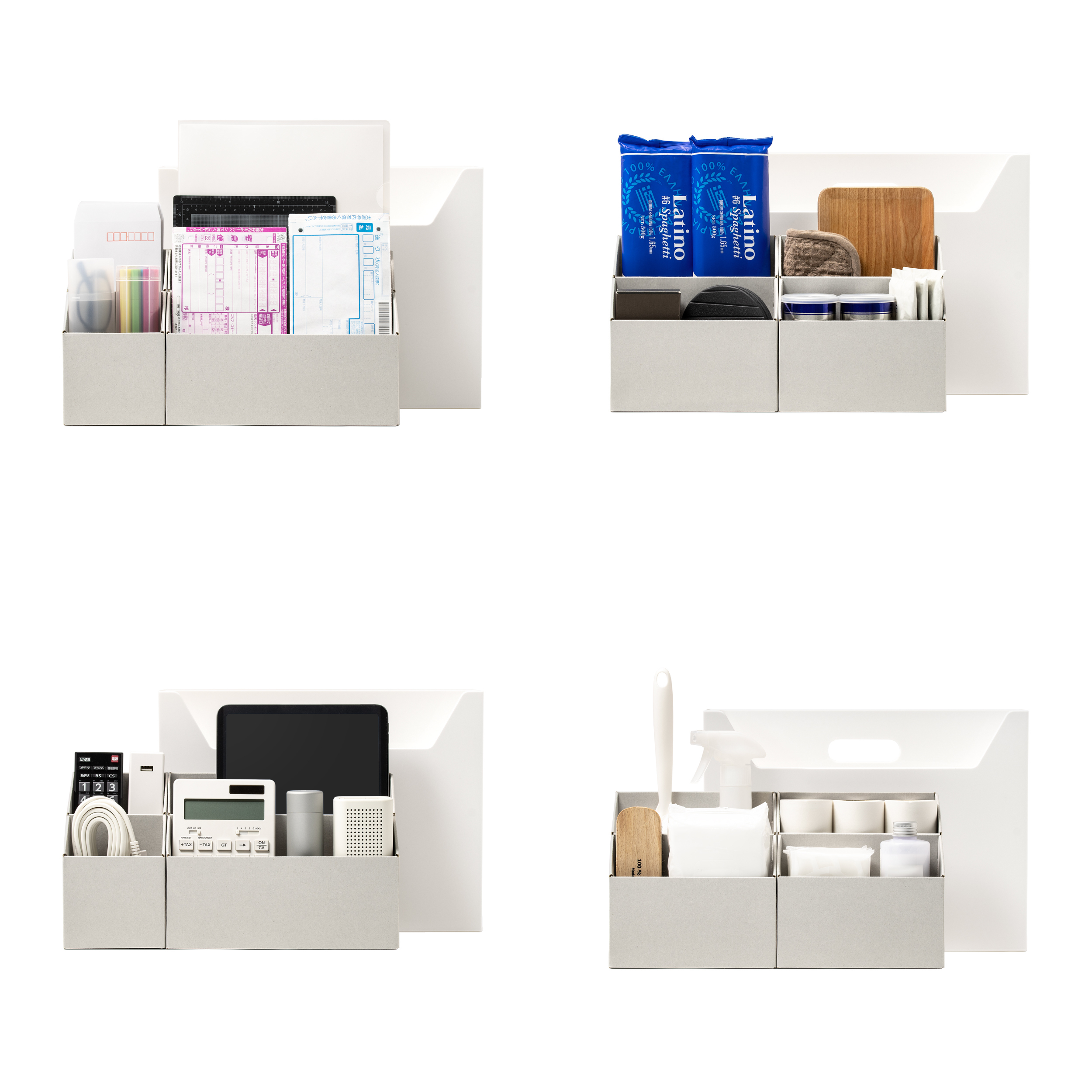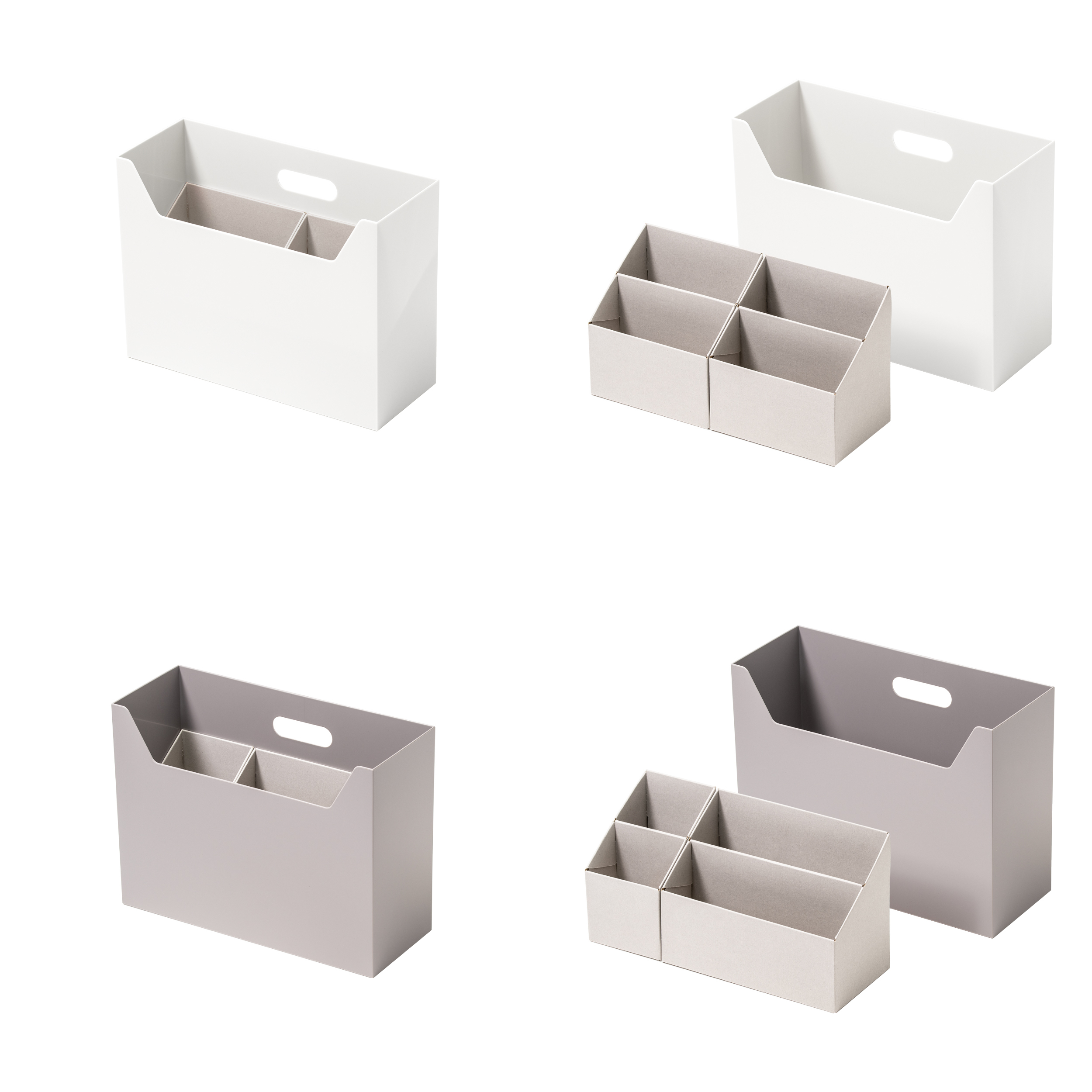 インナーオーガナイザーは軽くて扱いやすい紙製を採用しました。ホコリや汚れが目立ちにくく、ファイルボックスのカラーとも相性の良いグレーを選定。自立するため単体でもお使いいただけます。