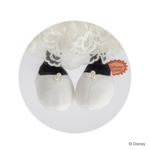 オシャレが大好きな「ミニーマウス」は、レースのドレス姿。「ミッキーマウス」とおそろいのリボンを頭に身に着けています。シューズにはイミテーションパールをあしらっています