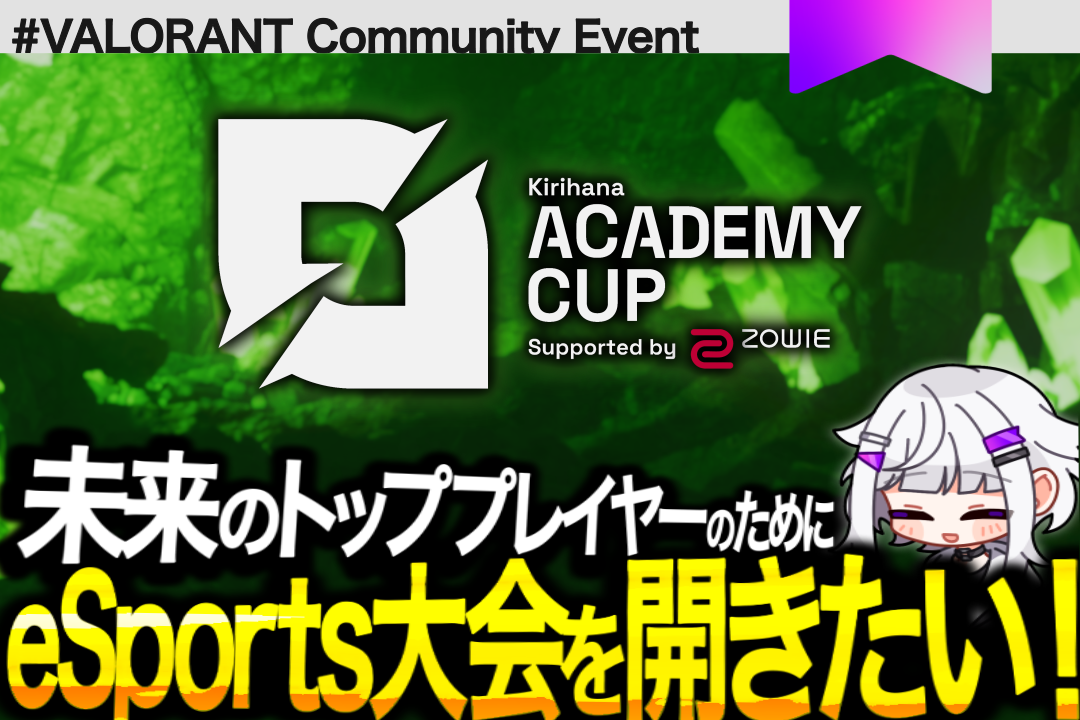 私たち「きりはなプロジェクト」は、YouTubeでのVALORANT情報発信で培った影響力を活かし、若手選手のための登竜門となる大会を創設します。本大会では、有力ながらも露出が少ないプロチームのアカデミー部門が集結。次世代を担うプレイヤーに輝く舞台を提供します。