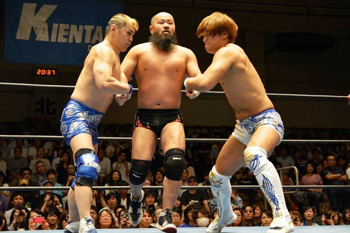 もう一つのメインは、タイチ、ヨシタツ(全日本)組VS後藤洋央紀(新日本)、田口隆祐(同)組。タイチは全日本出身だが、今年でデビュー20周年。新日本出身のほかの3選手も20周年で、ここでしかできない同期4選手によるメモリアルマッチになる。5月6日に後楽園で開催された「タカタイチマニア2.5」でタイチとヨシタツが再会のシングル戦を行っており、それがきっかけとなって同期4人によるタッグマッチが組まれた。