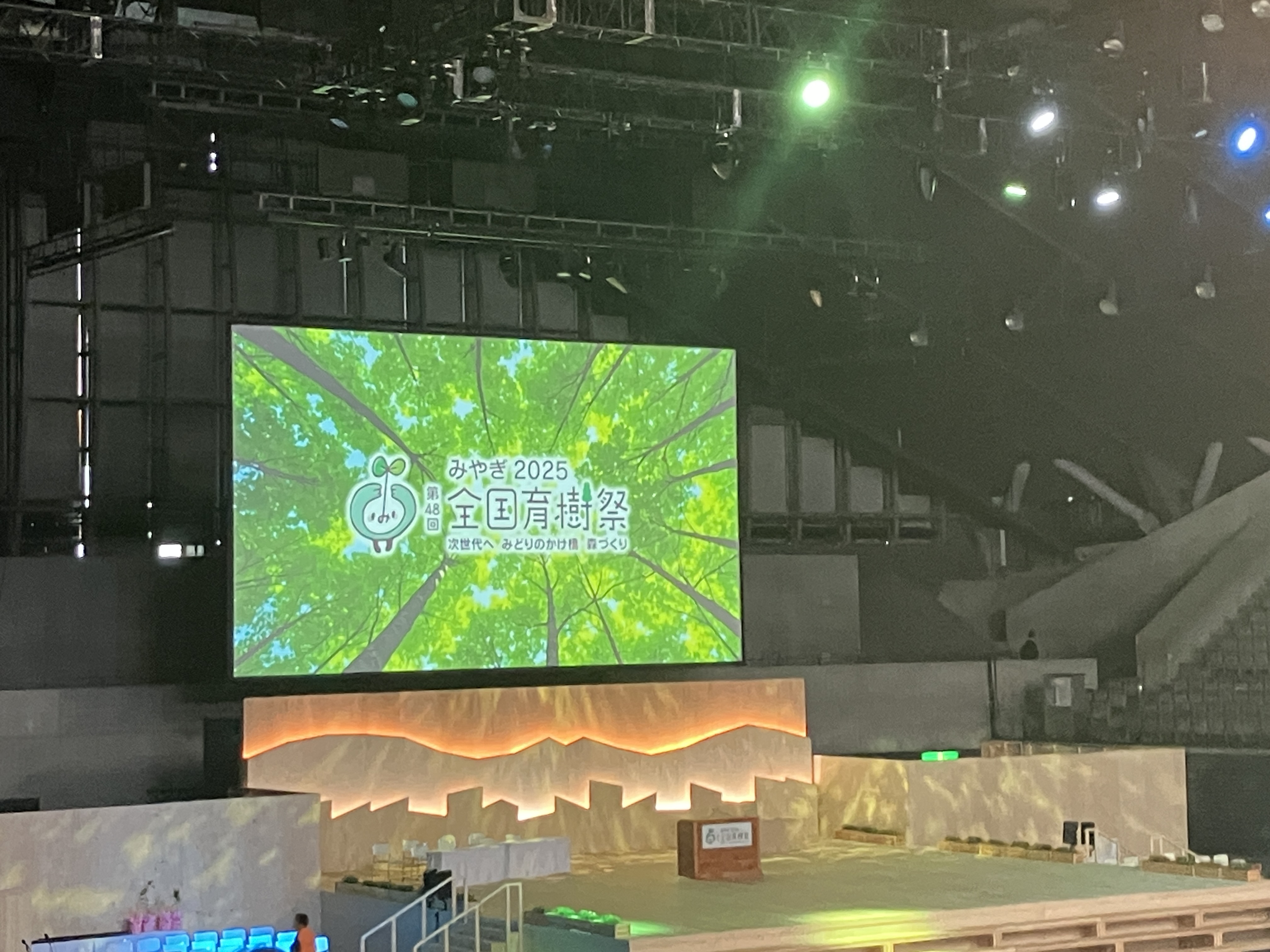 育樹祭は、森林の大切さや育てることの意義を広く伝える全国的な行事であり、今年は南蔵王野営場でのお手入れ行事(10月4日)と、セキスイハイムスーパーアリーナでの式典(10月5日)が行われました。